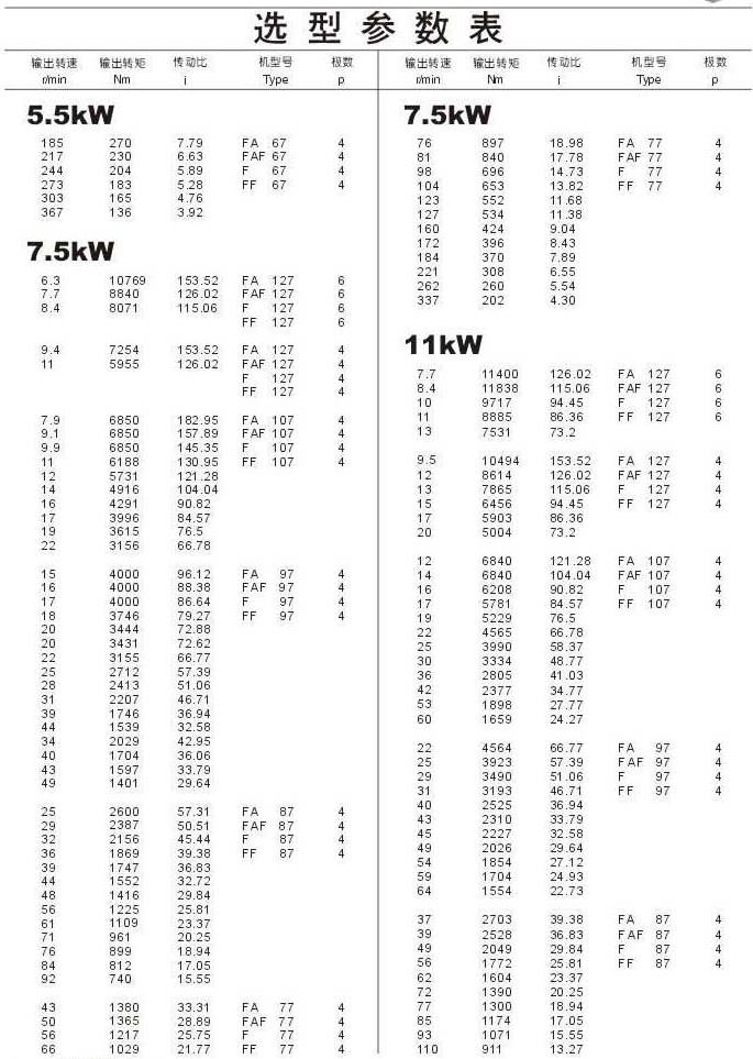 選型參數(shù)表5.5kW(續(xù)),7.5kW,11kW