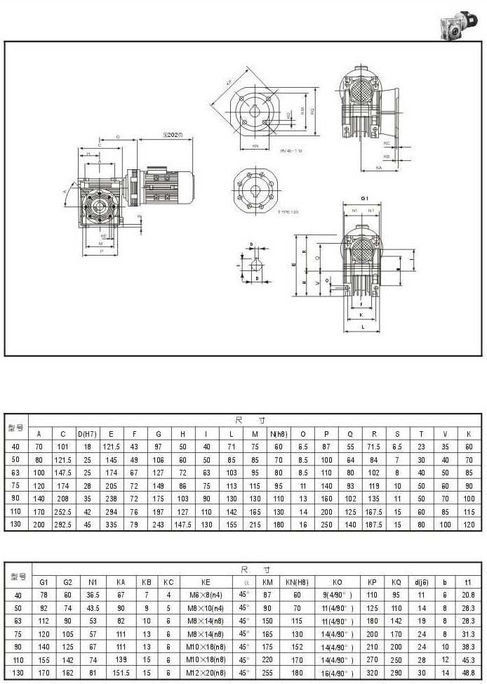 蝸輪減速機(jī)與擺線減速機(jī)組合型技術(shù)參數(shù)表(輸出扭矩N.M)三