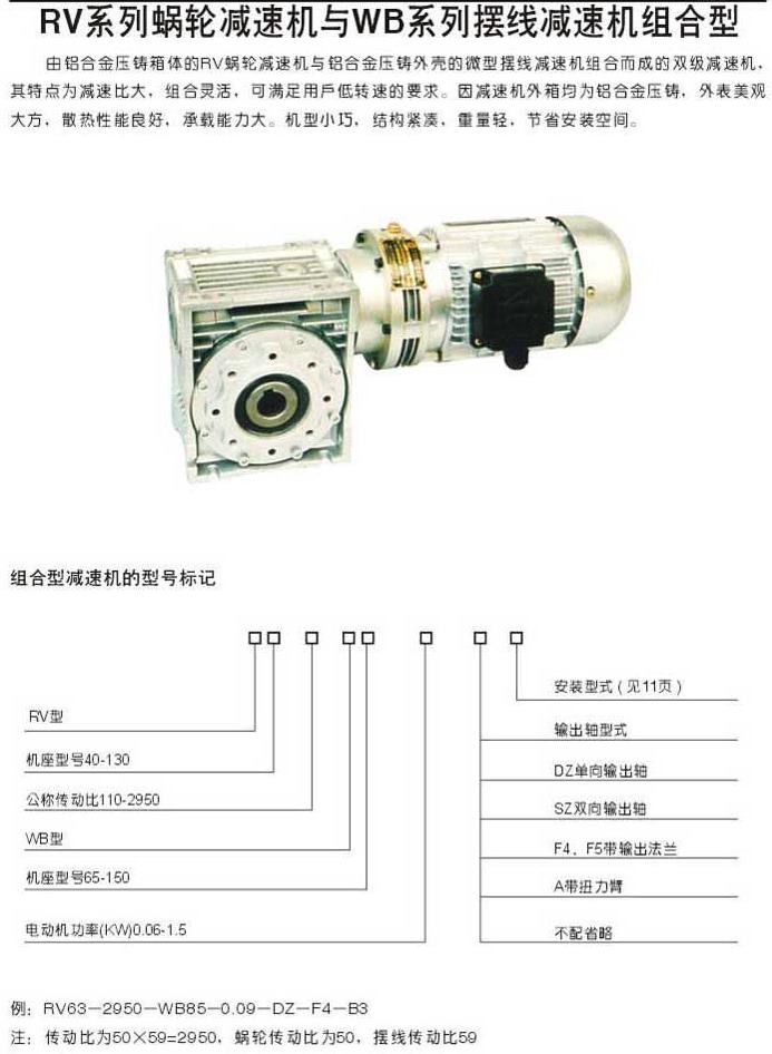 RV系列蝸輪減速機(jī)與WB系列擺線減速機(jī)組合型型號(hào)表示方法